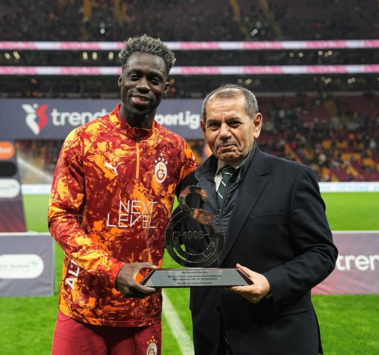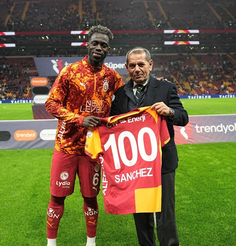 Maç öncesinde futbolcumuz Davinson Sanchez’e, Galatasaray’da 100 maçı geride bırakması anısına Başkan Dursun Aydın Özbek tarafından plaket ve kendisine özel hazırlanan forma hediye edildi.